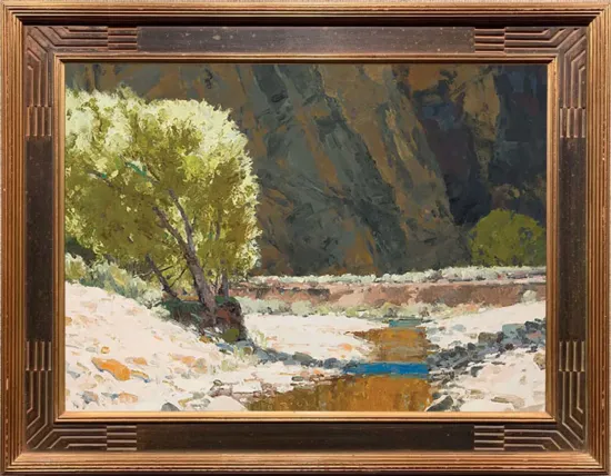 Please note that the first unframed photo is most accurate for color. Framed photographs are to show the frame and are not color corrected to the painting. *The Condition Reports are for guidance only and should not be relied upon as statements of fact, and do not constitute a representation, warranty, or assumption of liability by Scottsdale Art Auction. Scottsdale Art Auction strongly encourages in-person inspection of items by the bidder. All lots offered are sold “AS IS”. Please refer to item two in our terms and conditions for further information.
