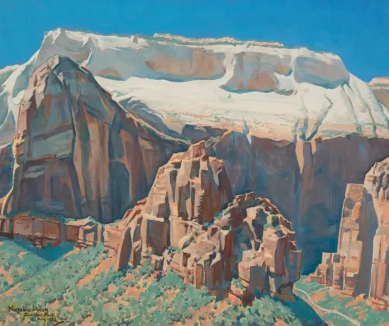 Signed lower left, dated Aug 1933 and inscribed "Zion Natl. Park"