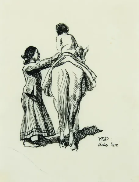 Navajo Woman, Child and Horse