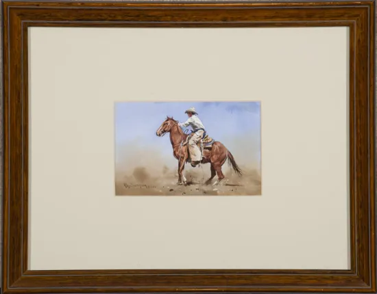Please note that the first unframed photo is most accurate for color. Framed photographs are to show the frame and are not color corrected to the painting. *The Condition Reports are for guidance only and should not be relied upon as statements of fact, and do not constitute a representation, warranty, or assumption of liability by Scottsdale Art Auction. Scottsdale Art Auction strongly encourages in-person inspection of items by the bidder. All lots offered are sold “AS IS”. Please refer to item two in our terms and conditions for further information.