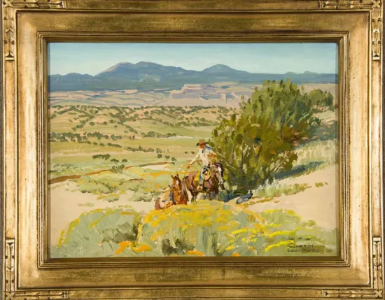 Please note that the first unframed photo is most accurate for color. Framed photographs are to show the frame and are not color corrected to the painting. *The Condition Reports are for guidance only and should not be relied upon as statements of fact, and do not constitute a representation, warranty, or assumption of liability by Scottsdale Art Auction. Scottsdale Art Auction strongly encourages in-person inspection of items by the bidder. All lots offered are sold “AS IS”. Please refer to item two in our terms and conditions for further information.