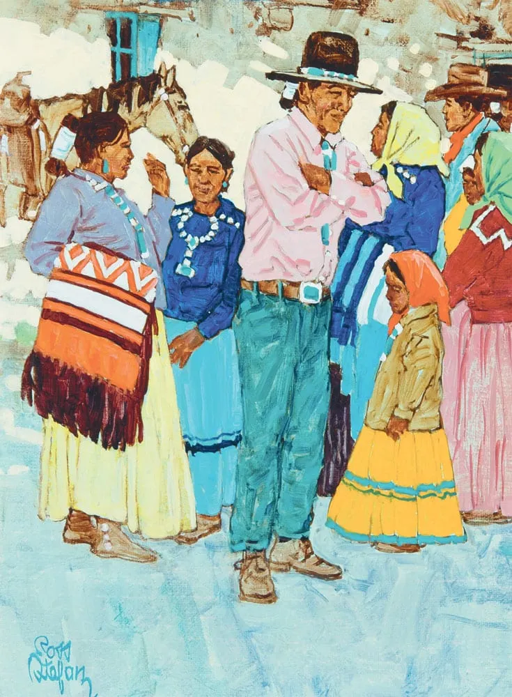 Ross Stefan’s father worked in advertising in Milwaukee and was very supportive of his son’s artistic ambitions. At 13, Ross had his first art exhibition—a smash sellout. Six years later, the family moved to Arizona where Stefan studied before he headed out on his own. From his base in Tubac, Stefan pursued his interpretations of the people and landscapes of the Arizona desert.
