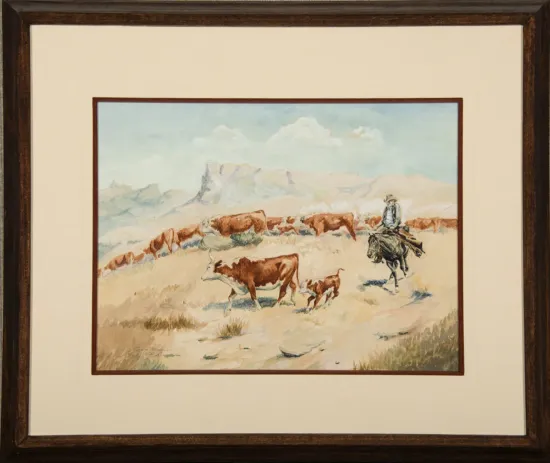 Please note that the first unframed photo is most accurate for color. Framed photographs are to show the frame and are not color corrected to the painting. *The Condition Reports are for guidance only and should not be relied upon as statements of fact, and do not constitute a representation, warranty, or assumption of liability by Scottsdale Art Auction. Scottsdale Art Auction strongly encourages in-person inspection of items by the bidder. All lots offered are sold “AS IS”. Please refer to item two in our terms and conditions for further information.