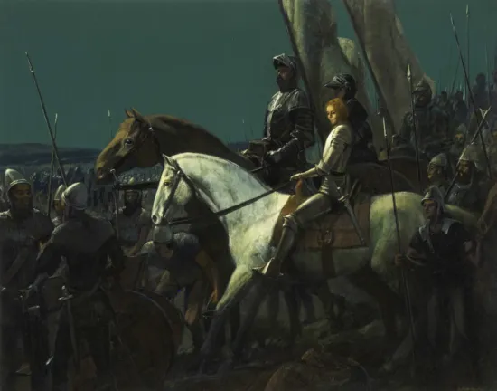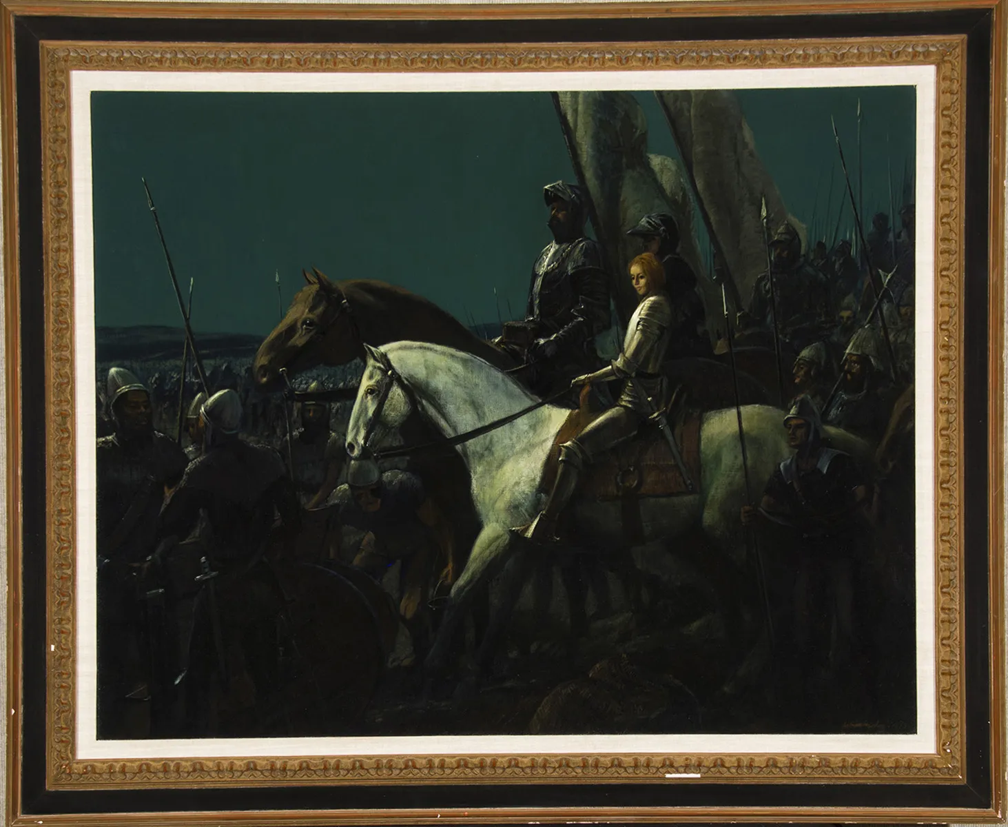 Joan was always in Wilson's studio: it says the painting was finished in 1970 but from what I remember he was constantly working on it. He did in-depth research on Joan of Arc. Wilson knew the names and could tell you who each of the figures in the painting were. Unfortunately, that was never written down other that his sketches of the piece. My father admired the piece every time he saw it.