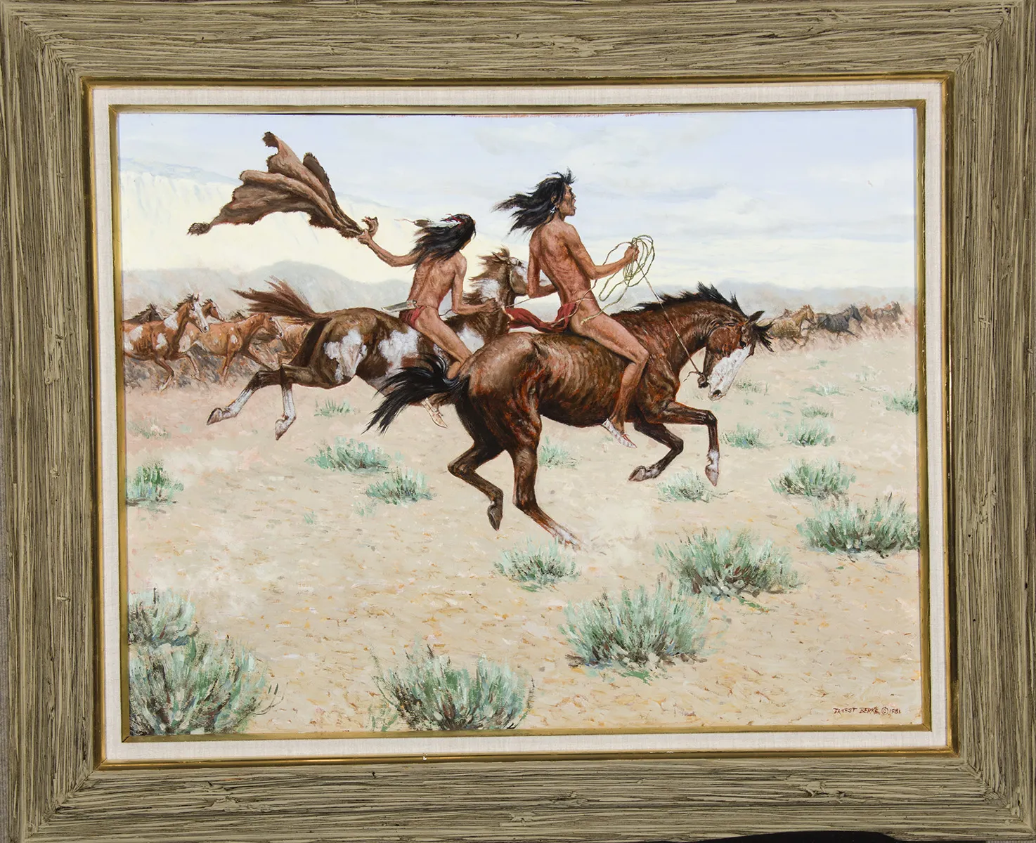 Please note that the first unframed photo is most accurate for color. Framed photographs are to show the frame and are not color corrected to the painting. *The Condition Reports are for guidance only and should not be relied upon as statements of fact, and do not constitute a representation, warranty, or assumption of liability by Scottsdale Art Auction. Scottsdale Art Auction strongly encourages in-person inspection of items by the bidder. All lots offered are sold “AS IS”. Please refer to item two in our terms and conditions for further information.