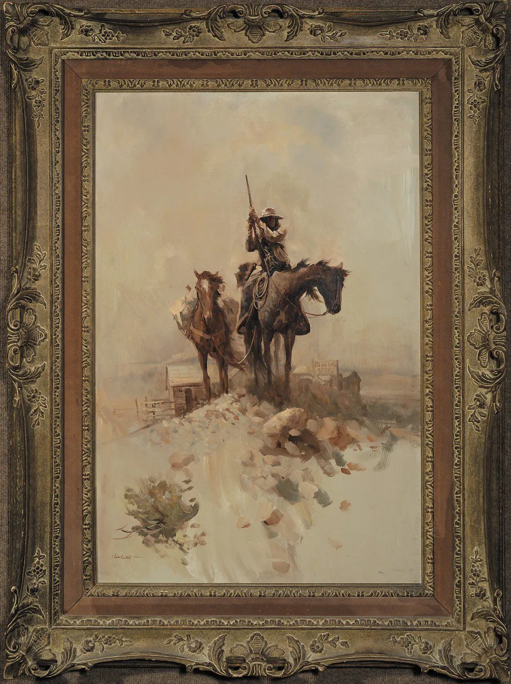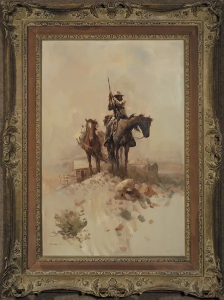 Please note that the first unframed photo is most accurate for color. Framed photographs are to show the frame and are not color corrected to the painting. *The Condition Reports are for guidance only and should not be relied upon as statements of fact, and do not constitute a representation, warranty, or assumption of liability by Scottsdale Art Auction. Scottsdale Art Auction strongly encourages in-person inspection of items by the bidder. All lots offered are sold “AS IS”. Please refer to item two in our terms and conditions for further information.