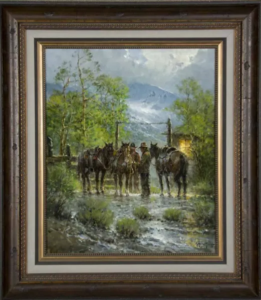 Please note that the first unframed photo is most accurate for color. Framed photographs are to show the frame and are not color corrected to the painting. *The Condition Reports are for guidance only and should not be relied upon as statements of fact, and do not constitute a representation, warranty, or assumption of liability by Scottsdale Art Auction. Scottsdale Art Auction strongly encourages in-person inspection of items by the bidder. All lots offered are sold “AS IS”. Please refer to item two in our terms and conditions for further information.