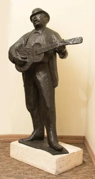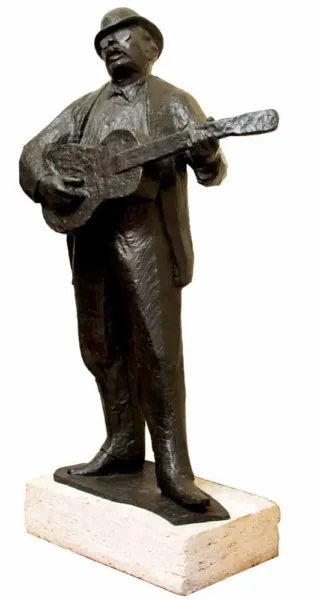 In his 1981 book Harry Jackson, the artist tells the story of Sor Capanna: “In 1958 and ’59 I went to Rome a lot, and there I met a big, likable American named Remington Olmsted, who had just started a restaurant in the Trastevere section called Da Meo Patacca. He and I loved to sing cowboy songs while Italian street musicians supplied the background. It was a very unusual but sympathetic musical marriage—we were all really doing the same thing. Remy then commissioned me in 1961 to do a statue of the great street singer and poet Sor Capanna, who was a hero of the poor people of Trastevere. He sang about his people and their whole history until his death in 1923. Naturally, the Establishment hated him. He spent most of his life in and out of jail. He was a man after my own heart, both as a poet who sang his own verses, and as an outlaw. In both respects he is the same breed as the artist and the cowboy, for whom ‘goin’ to jail is just one of the hazards of goin’ to town.’”