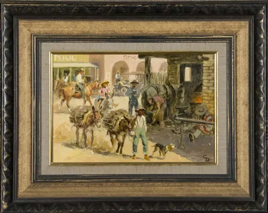 Please note that the first unframed photo is most accurate for color. Framed photographs are to show the frame and are not color corrected to the painting. *The Condition Reports are for guidance only and should not be relied upon as statements of fact, and do not constitute a representation, warranty, or assumption of liability by Scottsdale Art Auction. Scottsdale Art Auction strongly encourages in-person inspection of items by the bidder. All lots offered are sold “AS IS”. Please refer to item two in our terms and conditions for further information.