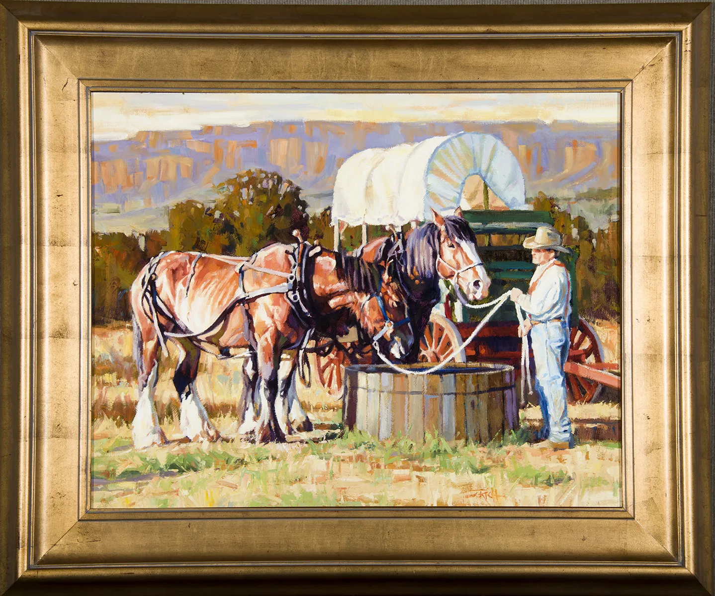 Please note that the first unframed photo is most accurate for color. Framed photographs are to show the frame and are not color corrected to the painting. *The Condition Reports are for guidance only and should not be relied upon as statements of fact, and do not constitute a representation, warranty, or assumption of liability by Scottsdale Art Auction. Scottsdale Art Auction strongly encourages in-person inspection of items by the bidder. All lots offered are sold “AS IS”. Please refer to item two in our terms and conditions for further information.