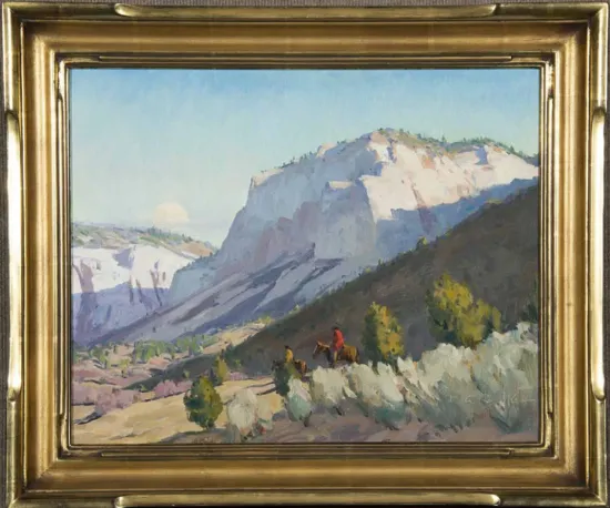 Please note that the first unframed photo is most accurate for color. Framed photographs are to show the frame and are not color corrected to the painting. *The Condition Reports are for guidance only and should not be relied upon as statements of fact, and do not constitute a representation, warranty, or assumption of liability by Scottsdale Art Auction. Scottsdale Art Auction strongly encourages in-person inspection of items by the bidder. All lots offered are sold “AS IS”. Please refer to item two in our terms and conditions for further information.
