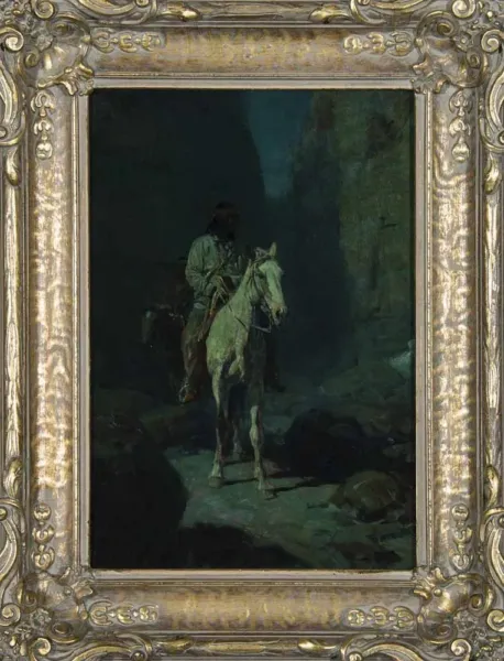 While many artists have painted nocturnes within Western art history, two major names are often considered the masters of the scenes: Frederic Remington and Frank Tenney Johnson. Melissa J. Webster, in her book Frank Tenney Johnson and the American West, points out that the two artists had different levels of experience with the subject: “Johnson earned much of his reputation as a fine artist from his nocturnes. Unlike Remington, who painted his finest nocturnes in the last four years of his life,