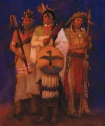 Ken Riley was born in Missouri in 1919. He loved both music and art, played the drums and painted. But art sunk its hooks deep, and he soon found himself studying, first in Kansas City with Thomas Hart Benton, then in New York with George Bridgman and Harvey Dunn. After serving as a combat artist during the Second World War, Riley made a name in illustration, producing work for Bantam Books, The Saturday Evening Post, Cosmopolitan, National Geographic, and Life magazine and traveling through Europe, North Africa, and the Far East. But the American West kindled Riley’s passion for fine art and he began to paint the Little Bighorn Battlefield, Grand Teton National Park, the Black Hills, the Badlands and in the Southwest. In 1982, Riley became a member of the Cowboy Artists of America, receiving gold medals in 1984, 1988, 1989, 1993, and winning the Prix de West in 1995. Riley never looked back, and we have never looked away. His paintings can be found in important public and private collections, including the White House, the Smithsonian Institution, the Booth Western Art Museum, and the Phoenix Art Museum.
