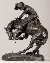 A chance meeting. Everybody in the wrong place at the wrong time. The man and the beast of burden he has tamed, in an instant, are entirely at the mercy of a small but utterly untamable piece of the wilderness. There’s no stealth in it. The rattler doesn’t want to bite you, but he’s letting you know he’s there. The sound he makes with that maraca in his tail is the loudest thing you’ve ever heard. Author James Barnes, visited the artist in his studio and at the Roman Bronze Works, where Remington often spent his days. In his 1905 Collier’s article “Frederic Remington—Sculptor” Barnes describes Remington’s delight as he works and molds the wax snake that would become the troublemaker in The Rattlesnake: “For instance, something was said about the position of the rattlesnake in a wax model of his frightened pony. Mr. Remington decided to change it; the string of wax that represented the snake was bent and curved and again replaced; this time the effect seemed more pleasing. ‘Great fun,’ said he, ‘isn’t it? Just see what can be done with it—isn’t it wonderful!’”