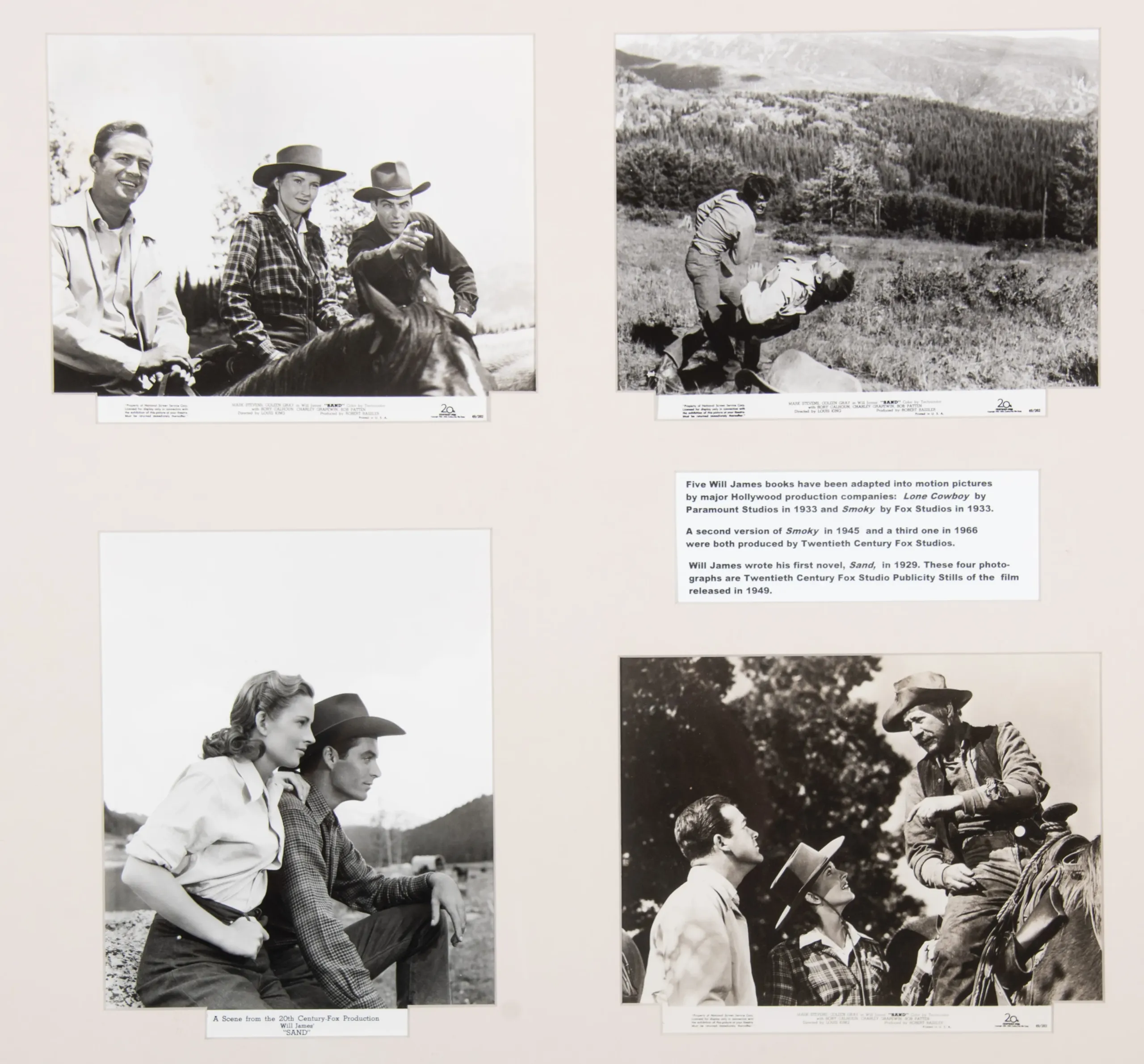 *4 framed photographs of scenes from Sand (1949 movie starring Mark Stevens and Coleen Gray) to accompany this lot