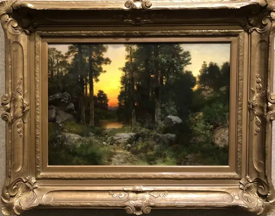 South of Flagstaff and the Grand Canyon, the Coconino National Forest is home to magnificently striated red rock formations, including those around Sedona, and is crisscrossed by tumbling creeks and rivers that irrigate scented forests of Ponderosa pine. From red desert to green Alpine tundra, the Coconinos are astonishingly diverse and stunningly picturesque. Inspired by the beauty of the area, Thomas Moran’s Solitude. The Coconino Forest, Arizona places the viewer–a weary but happy hiker, perhaps–at the onset of what promises to be a dramatic sunset. Fiery hues filter through the pines. The rim of a red rock canyon reflects hazily in a still, sylvan pond. A short walk will see you to a panoramic vista, red glowing on red, just as the sun goes down. You feel solitude, not loneliness, and a frisson of anticipation.