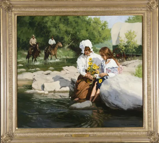 Please note that the first unframed photo is most accurate for color. Framed photographs are to show the frame and are not color corrected to the painting. *The Condition Reports are for guidance only and should not be relied upon as statements of fact, and do not constitute a representation, warranty, or assumption of liability by Scottsdale Art Auction. Scottsdale Art Auction strongly encourages in-person inspection of items by the bidder. All lots offered are sold “AS IS”. Please refer to item two in our terms and conditions for further information.