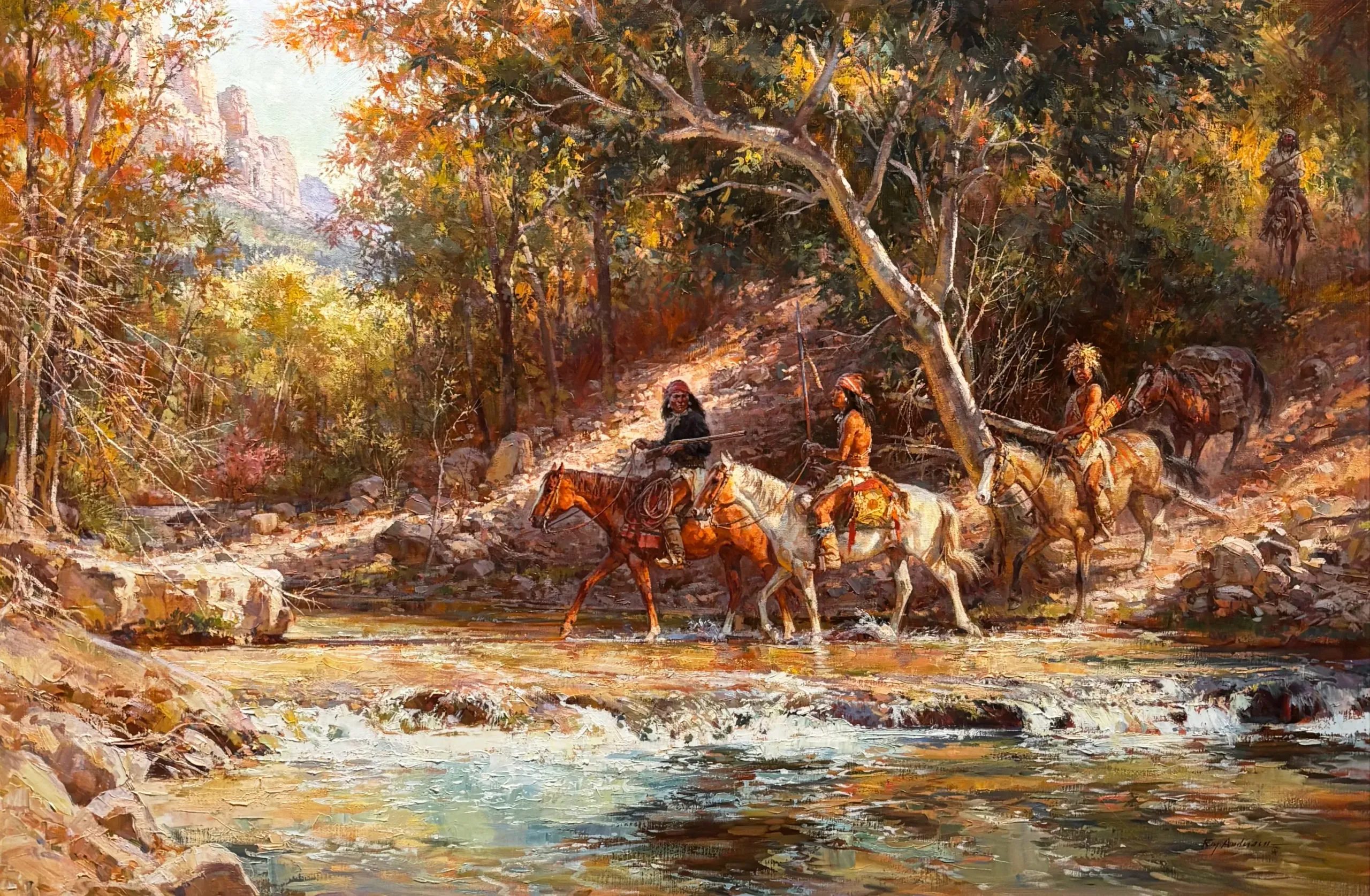 Roy Anderson was voted into the Cowboy Artists Of America in 1989 and remained a member of the group for over twenty-five years. He received the Silver Medal for Oil Painting in 1999 and many other awards while he was an active member. He is known mainly for his paintings depicting members of the Crow, Cheyenne and Apache tribes. He began his career in Chicago and New York where he worked as an illustrator and completed many covers for Time Magazine. He also did a series of postage stamps, most notably on dogs and American horses and in 1984 and 1985 won Stamp of the Year Award.