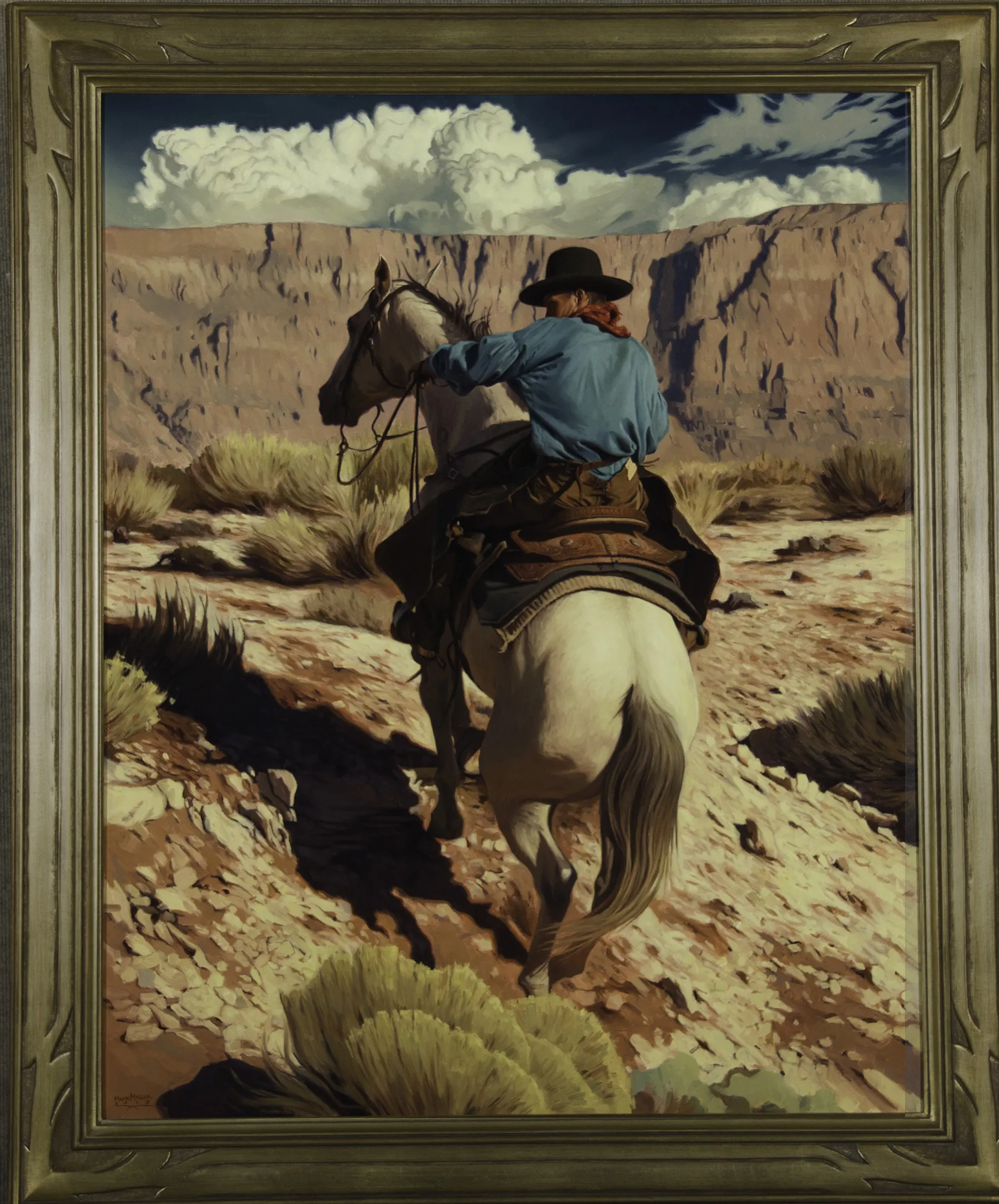 Please note that the first unframed photo is most accurate for color. Framed photographs are to show the frame and are not color corrected to the painting. *The Condition Reports are for guidance only and should not be relied upon as statements of fact, and do not constitute a representation, warranty, or assumption of liability by Scottsdale Art Auction. Scottsdale Art Auction strongly encourages in-person inspection of items by the bidder. All lots offered are sold “AS IS”. Please refer to item two in our terms and conditions for further information.