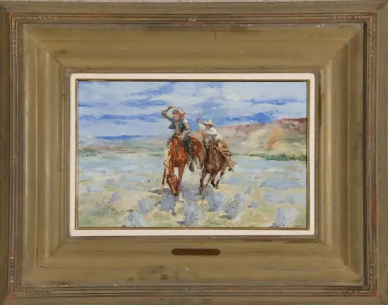 Please note that the first unframed photo is most accurate for color. Framed photographs are to show the frame and are not color corrected to the painting. *The Condition Reports are for guidance only and should not be relied upon as statements of fact, and do not constitute a representation, warranty, or assumption of liability by Scottsdale Art Auction. Scottsdale Art Auction strongly encourages in-person inspection of items by the bidder. All lots offered are sold “AS IS”. Please refer to item two in our terms and conditions for further information.