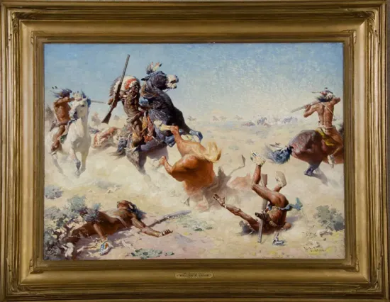 Please note that the first unframed photo is most accurate for color. Framed photographs are to show the frame and are not color corrected to the painting. *The Condition Reports are for guidance only and should not be relied upon as statements of fact, and do not constitute a representation, warranty, or assumption of liability by Scottsdale Art Auction. Scottsdale Art Auction strongly encourages in-person inspection of items by the bidder. All lots offered are sold “AS IS”. Please refer to item two in our terms and conditions for further information.