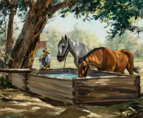 LOT 67John FawcettBorrowed PoniesOil on board10 x 12 inchesSold for $1,053.00Including Buyers Premium