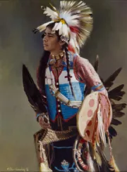 LOT 66Stan DavisThe Bride of Standing CrowOil on canvas14 x 11 inchesSold for $585.00Including Buyers Premium