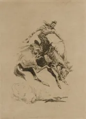 LOT 4Mehl LawsonCowboy with HorsePen and ink10 1/2 x 13 1/2 inchesSold for $117.00Including Buyers Premium
