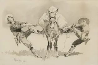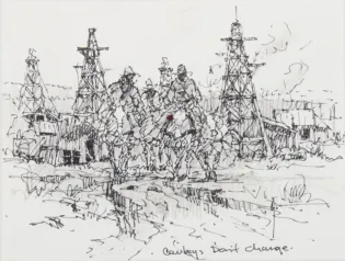 LOT 128G. HarveyCowboys don’t Change, sketchPen & Ink6 1/2 x 8 1/2 inchesSold for $2,925.00Including Buyers Premium