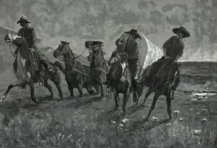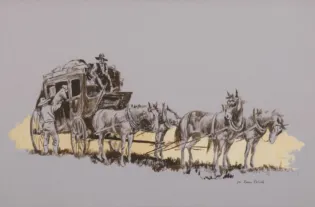 LOT 6Joe Rader RobertsStagecoachDry brush and oil11 1/2 x 17 1/2 inchesSold for $234.00Including Buyers Premium