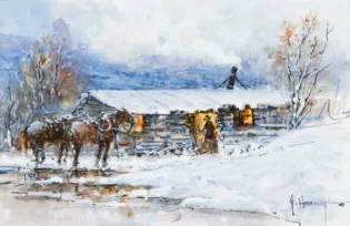 LOT 392Earl CarpenterWagon in the SnowOil on board7 x 12 inchesSold for $234.00Including Buyers Premium