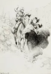 LOT 260Gerard Curtis DelanoLeft Alone in the Wilds – Mrs. Peter DorianDrybrush Ink18 1/2 x 12 3/4 inchesSold for $1,404.00Including Buyers Premium