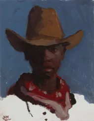 LOT 295Kenneth RileyGun TraderAcrylic on board6 1/2 x 5 inchesSold for $1,404.00Including Buyers Premium