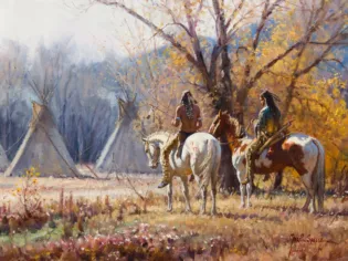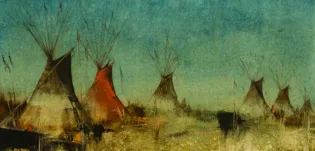LOT 13Ron StewartIndian Camp in AspenOil on canvas25 x 60 inchesSold for $4,972.50Including Buyers Premium