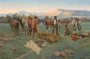 LOT 147Fred Harman Jr.A Welcome FireOil on canvas24 x 30 inchesSold for $3,510.00Including Buyers Premium