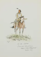 LOT 125Nick EggenhoferNative American on HorsebackWatercolor11 x 8 1/2 inchesSold for $1,053.00Including Buyers Premium