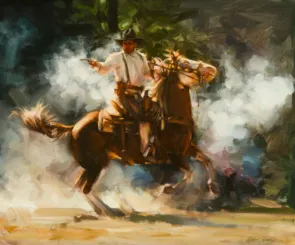 LOT 383Robert KrogleGunsmoke and DustOil on canvas20 x 24 inchesSold for $1,638.00Including Buyers Premium