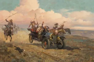 LOT 97Conrad SchwieringThe Pesky FlyOil on board25 x 30 inchesSold for $7,605.00Including Buyers Premium