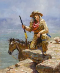 LOT 18Joe GrandeePatrolling the Bluffs Above Terlingua CreekOil on board18 x 24 inchesSold for $1,872.00Including Buyers Premium