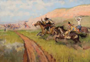 LOT 415De Cost SmithHorse StealingOil on canvas18 1/4 x 26 inchesAvailable for: $12,000.00Including Buyers Premium